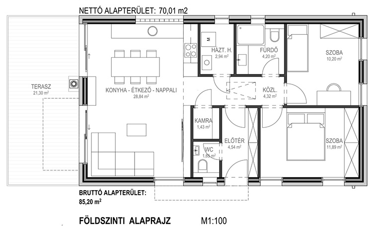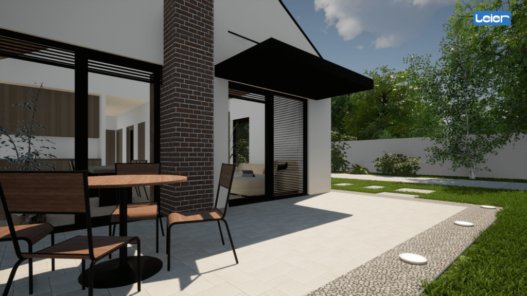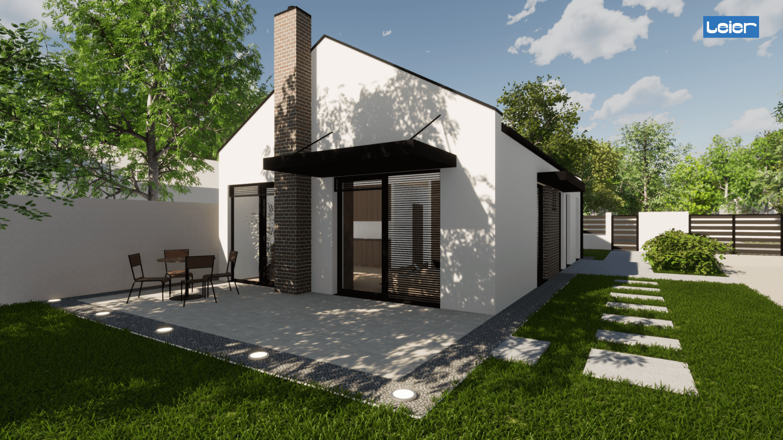 A nyeregtetős MARCAL házat 2-3 fő részére tervezte a Leier. Nagy belmagasságú konyha+nappali terével, 21 m2-es teraszkapcsolatával igazán exkluzív kisház.